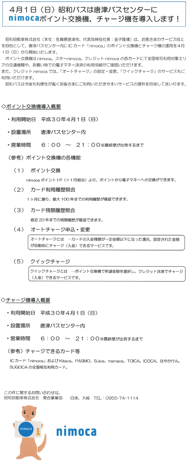 nimocaポイント交換機、チャージ機が唐津バスセンターに導入
