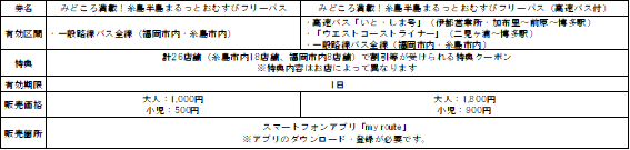 ・「糸島半島1dayフリーパス(高速バス付き)」「糸島半島1dayフリーパス」は引き続き販売いたします。特典は付きませんのでご注意ください。