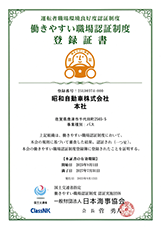 弊社はこの度、国土交通省が創設した働きやすい職場認証制度(正式名称『運転者職場環境良好度認証制度』)におきまして1つ星の認証を受けました。