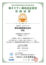 働きやすい職場認証制度「1つ星」認証のお知らせ