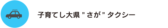 - 「子育てし大県”さが”タクシー」は、保育所や学校、塾などに子どもを送り迎えできない保護者に代わって送迎を行ったり、荷物が多くなりがちな乳幼児を連れた外出時のサポート、急なお子様の発熱による夜間受付病院への送迎など、いざという時に安心してご利用できる、子育て世代にやさしいタクシーのことです。