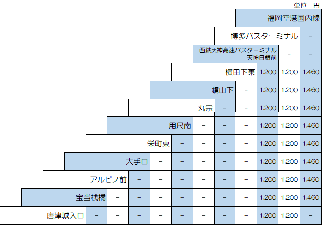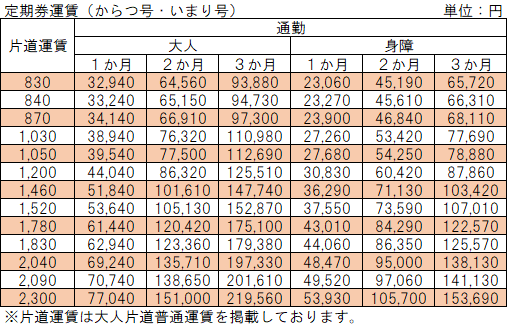 • からつ号、いまり号の定期券をお求めの方は、こちらの定期券金額早見表でご確認ください。
